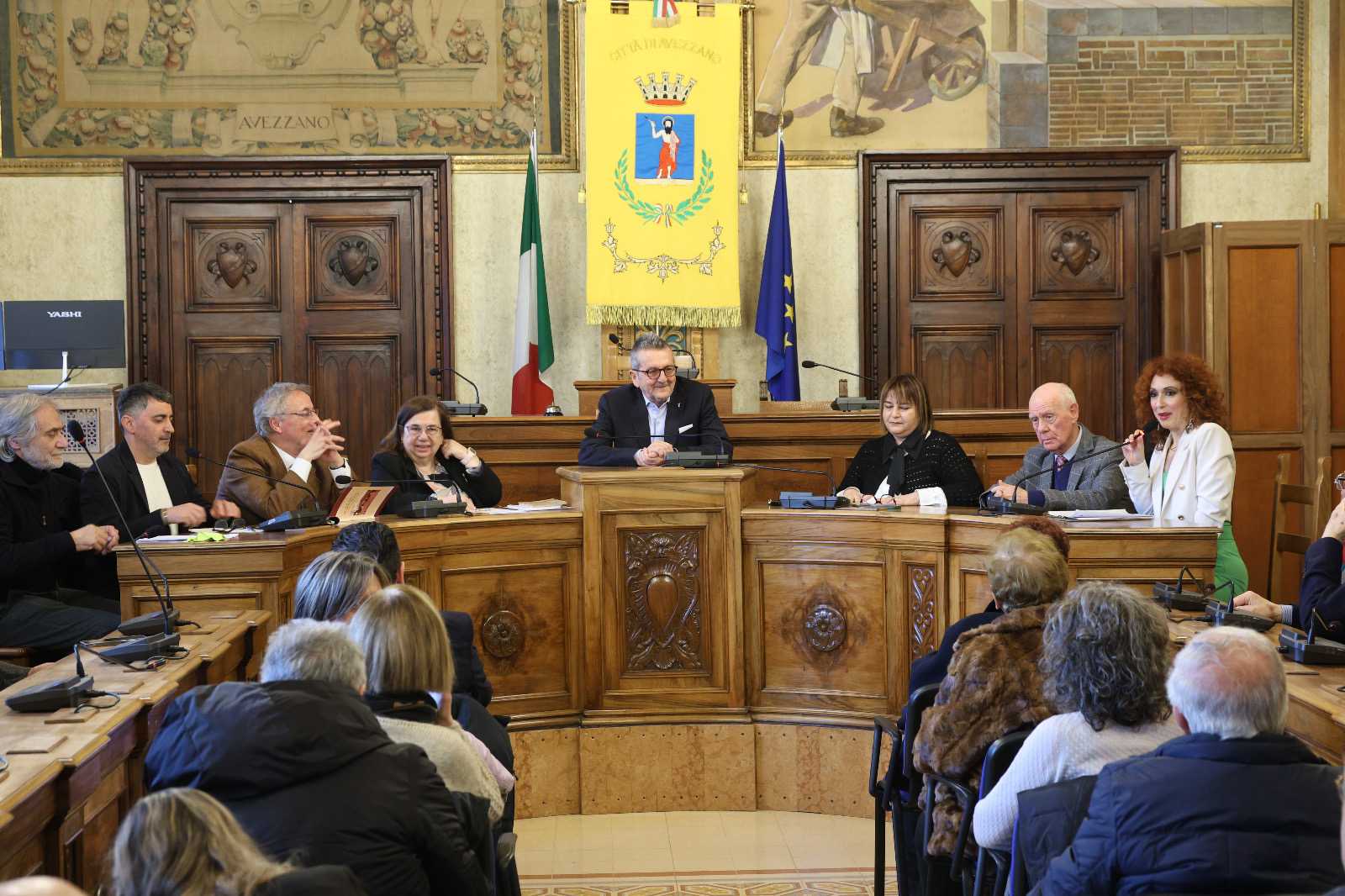 “Dentro quest’aula, – ha sottolineato in apertura il sindaco Gianni Di Pangrazio – percepisco un cuore unico che batte ed è quello della nostra città, unita e volenterosa. Per Antonio Pitoni, Avezzano era come una seconda mamma: egli fu un protagonista indiscusso della vita culturale degli anni passati.