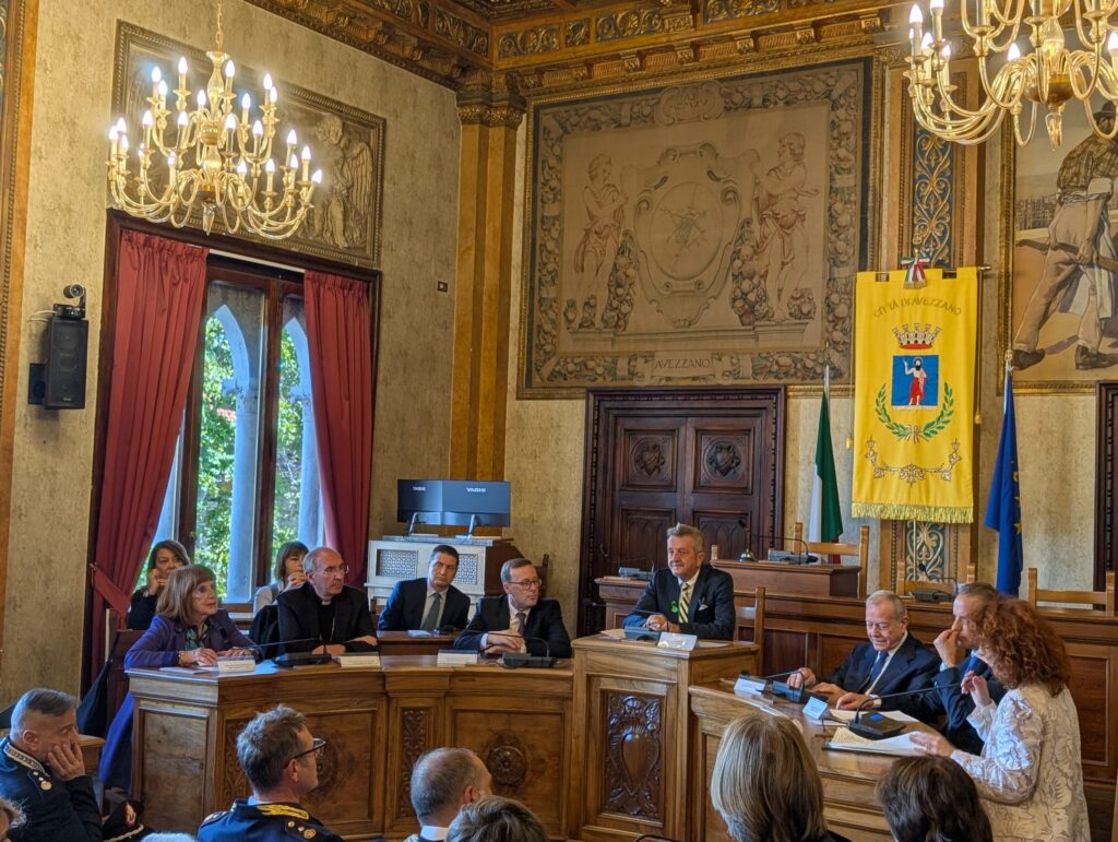 La cerimonia si è conclusa con lo svelamento e la benedizione da parte del vescovo Massaro della targa d’intitolazione presso il Liceo classico “Alessandro Torlonia” di Avezzano.