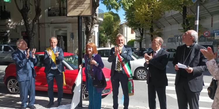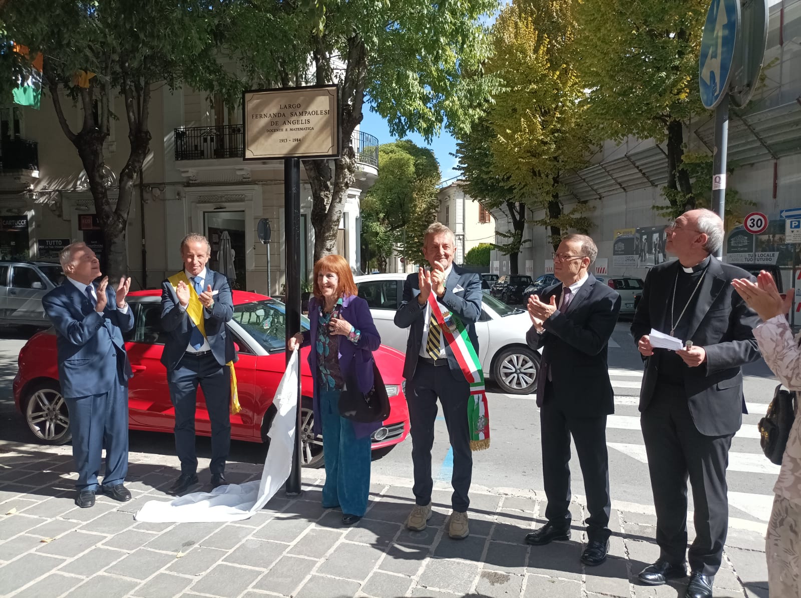 Il vescovo Massaro che ha letto una lettera di monsignor Rino Fisichella, collega della professoressa Fernanda Sampaolesi al tempo dell’insegnamento al Virgilio di Roma, il quale ne ricorda e ne apprezza la dedizione che aveva nei confronti dei suoi allievi. Il vescovo Massaro ha ricordato come questa sia una iniziativa lodevole, ritenendo che la città di Avezzano compia un atto di giustizia e gratitudine, poiché dedicare un largo alla professoressa De Angelis significa consentire che la sua memoria rimanga viva sia negli ex studenti sia nei giovani che passando lì troveranno ulteriori motivazioni per amare lo studio e la società civile.