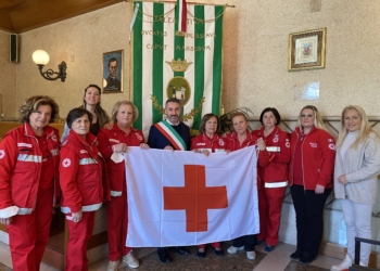 Tagliacozzo. Anche sulla facciata del palazzo municipale di Tagliacozzo sventola la bandiera della Croce Rossa Italiana, accanto agli stendardi istituzionali,...