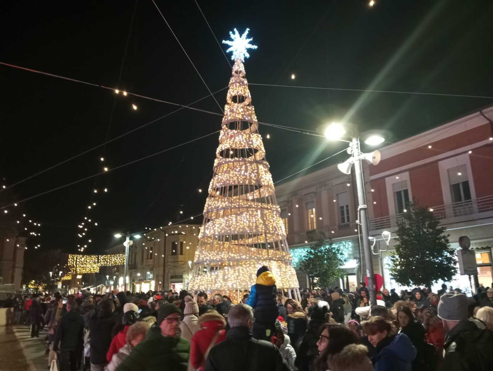 Avezzano. Avezzano accende il Natale: folla in festa per l’albero, la stella cometa e il cielo stellato.