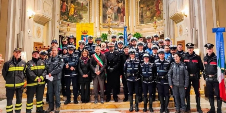 Avezzano. Questa mattina, nella Chiesa di San Giovanni, si sono svolti i festeggiamenti in onore di San Sebastiano, Santo Patrono della Polizia Locale di Avezzano.
