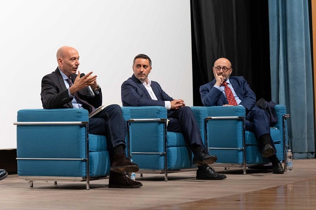 In seguito il dibattito, moderato da Armando Floris, nel corso del quale è stato ricordato l’altissimo profilo di Falcone e Borsellino sottolineando l’attualità delle intuizioni e lo straordinario esempio di senso del dovere e coraggio. In particolare i magistrati Stefano Amore, assistente presso la Corte Costituzionale, e Fausto Cardella, già Procuratore Generale della Corte di Appello di Perugia hanno posto l’accento sull’ abilità dei due magistrati di aver costruito il pool antimafia nel maxiprocesso contro Cosa Nostra che coinvolse 475 imputati per diversi capi d’accusa, tra cui quello di associazione a delinquere di stampo mafioso e che si svolse nell’Aula bunker del Carcere Ucciardone di Palermo tra il 10 febbraio 1986 e il 16 dicembre 1987. Hanno evidenziato la differenza tra fenomeno terroristico e quello di stampo mafioso.