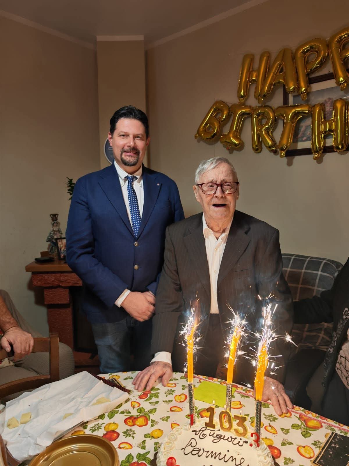Capistrello. La comunità di Capistrello si è riunita con affetto e ammirazione per festeggiare un compleanno davvero speciale: quello del signor Carmine Doschi, che oggi spegne 103 candeline. Un traguardo che rappresenta non solo una lunga vita, ma anche un inno alla forza, alla saggezza e alla serenità che solo un’intera vita può regalare.