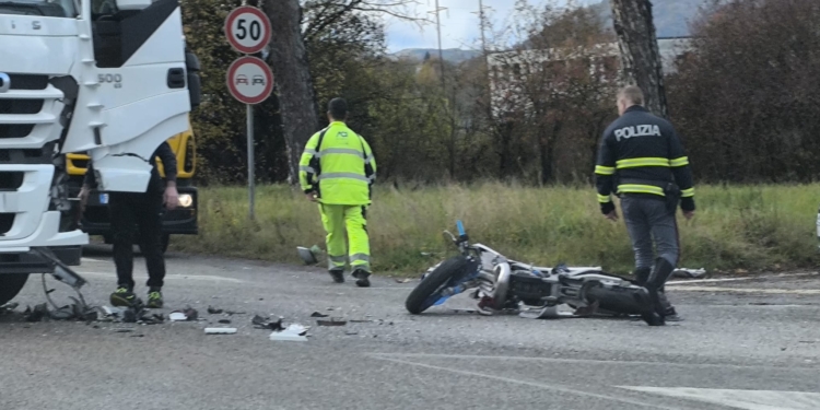 CARSOLI – Un grave incidente si è verificato poco fa sulla SS.5 quater Tiburtina Valeria nei pressi dello svincolo autostradale di Carsoli Oricola. Coinvolto un Tir in immissione verso l’autostrada A24 ed un centauro che viaggiava sulla Tiburtina. Violento l’impatto, la moto si è schiantata sull’asfalto distrutta. Sul posto tempestivi i soccorsi del 118 di Carsoli che hanno trasportato il conducente della moto ferito presso l’Ospedale di Avezzano in codice rosso. Illeso il conducente del Tir. La Polizia Stradale di Carsoli è intervenuta sia per i rilievi di rito al fine di stabilire la dinamica dell’incidente e sia per disciplinare il traffico che è rimasto bloccato nella carreggiata in direzione di Roma, ma disposto in senso alternato.