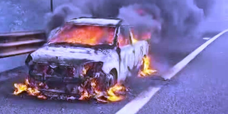 Carsoli – paura su A24, auto prende fuoco: tempestivo l’intervento della Polstrada