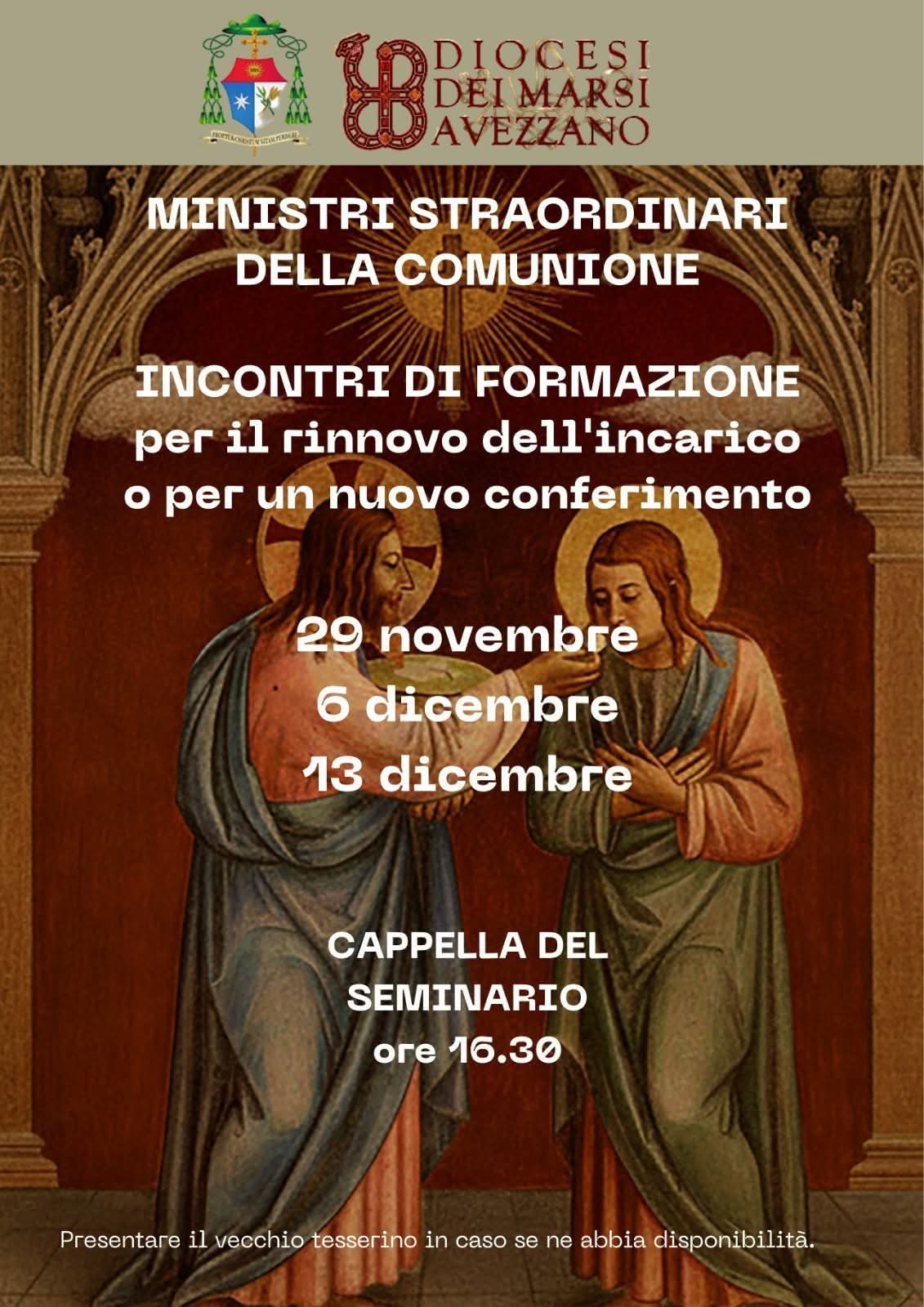 Avezzano. Un servizio silenzioso, prezioso, spesso nascosto. Ma decisivo per la vita delle comunità. Sono cento i ministri straordinari della comunione, tra rinnovi e anche alcuni nuovi ingressi, che stanno partecipando al corso di formazione triennale organizzato dalla diocesi dei Marsi. L’incontro, ospitato ieri pomeriggio nei locali del Seminario vescovile di Avezzano, ha rappresentato il secondo appuntamento del percorso guidato da padre Carmine Terenzio, frate francescano, incaricato della formazione per la diocesi dei Marsi.