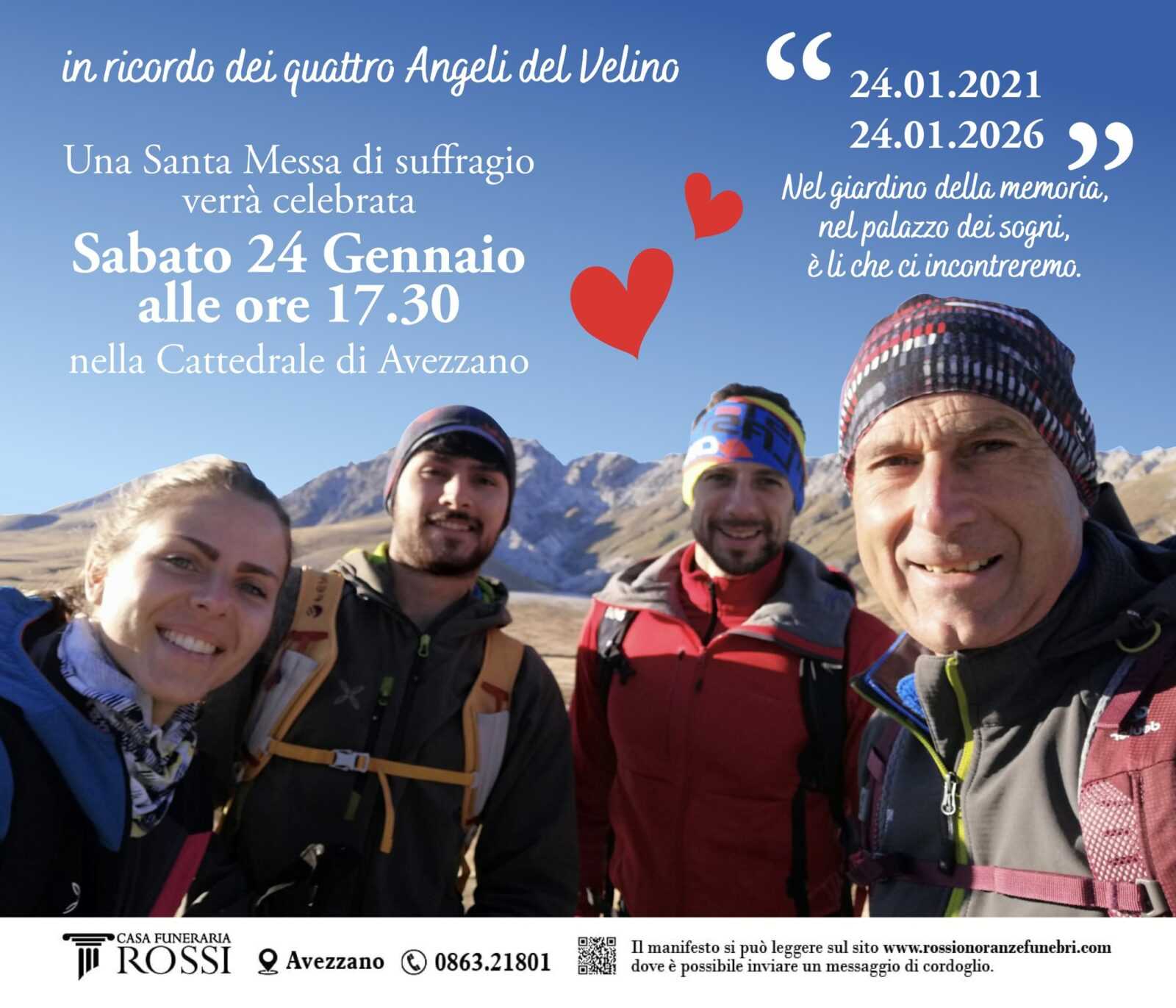 Ricordando i Quattro Angeli del Velino: Un amore che non muore mai. Il 24 gennaio 2021 una tragedia ha segnato per sempre il cuore di Avezzano e di tutti coloro che hanno conosciuto i quattro amici che quel giorno hanno perso la vita sul Velino.