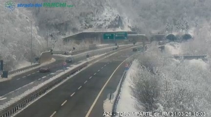 Poco dopo, alle 9:40, le segnalazioni di Strada dei Parchi indicano neve anche nel tratto compreso tra il bivio A25/A24 Roma-Teramo e Aielli-Celano, dove il paesaggio torna temporaneamente a tingersi di bianco.