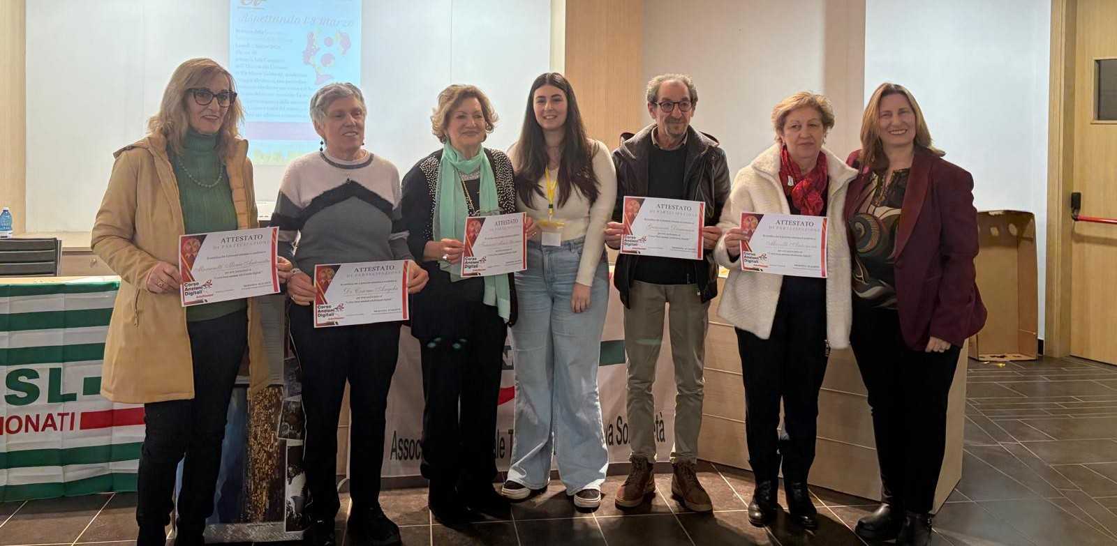 In conclusione sono stati consegnati gli attestati di partecipazione per il corso anziani (adultissimi) digitali.