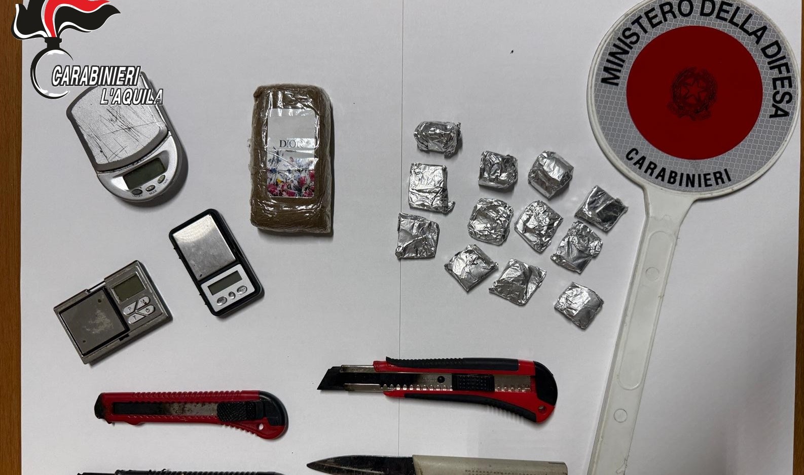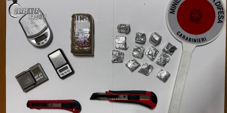 I Carabinieri, avvezzi ad ascoltare questo tipo di “giustificazioni”, decidono di estendere la perquisizione nel luogo indicato dall’uomo, ossia un esercizio commerciale di Capistrello, rinvenendo altri 40 grammi di hashish, già suddiviso in più involucri, ma anche 3 bilancini di precisione, e materiale necessario al confezionamento in dosi della sostanza stupefacente.