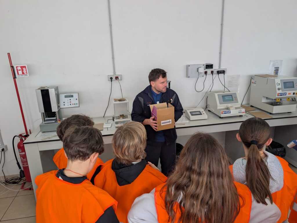 Durante la visita, i ragazzi hanno osservato la linea produttiva che crea bobine da 20 tonnellate e il laboratorio per i test di qualità. La cartiera conta oggi 140 dipendenti e produce cartoncino da fibre recuperate con grammature tra i 100 e i 220 grammi. Gli studenti hanno approfondito i passaggi tecnici e compreso il valore della raccolta differenziata.