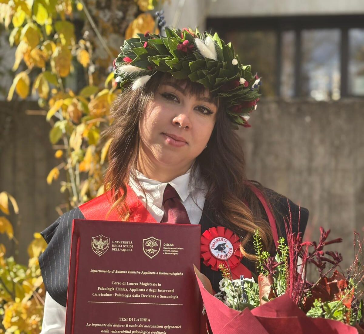 La neo-dottoressa ha discusso una tesi di particolare rilevanza scientifica dal titolo: “Le impronte del dolore: il ruolo dei meccanismi epigenetici nella vulnerabilità psicologica ereditaria”. L’argomento, incentrato sull’interazione tra fattori genetici e ambientali nella trasmissione della vulnerabilità psicologica, ha meritato il plauso della commissione.