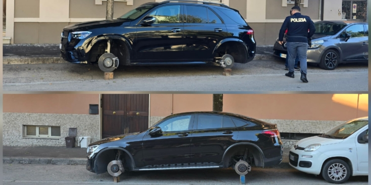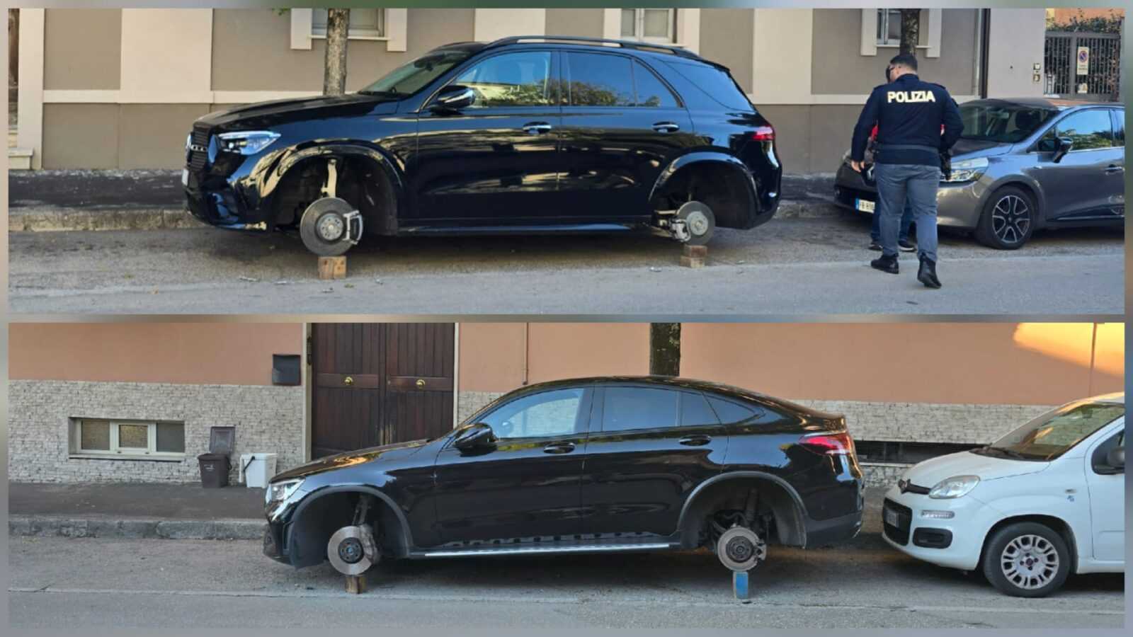 Durante la notte, ignoti hanno smontato e rubato tutte le ruote, lasciando le auto nello stesso punto in cui erano state parcheggiate il giorno prima.