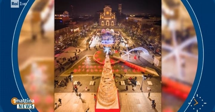 L’albero scintillante, la stella cometa gigante, le luci che sembrano mille lucciole. E poi, la pista di pattinaggio, le casette di legno, la fontana colorata…E sullo sfondo la Cattedrale dei Marsi avvolta in un’atmosfera magica. L’immagine di Avezzano vista dall’alto è tra le “cartoline” inviate dagli spettatori allo storico programma di Rai 1 Unomattina News, condotto da Tiberio Timperi e Maria Soave.
