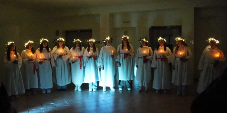 I giorni precedenti e la stessa mattinata del 13 la scuola si è trasformata in un laboratorio di idee condivise, di continui cambi di sceneggiatura, di lavori manuali crestivi. Il tutto per creare bellezza. Luci spuntate all’improvviso, drappi di raso colorato, decorazioni natalizie pensate e realizzate sul momento. Costumi di scena, profumo di pulito e ogni angolo illuminato. Tele e muri dipinti, note musicali che raggiungevano il cielo, lo sport sano e la danza con movimenti provati e riprovati con lo scopo di avvicinarsi alla perfezione. E poi Saturno e le stelle ammirate con un telescopio gigantesco. Tutto questo in un tourbillon di sorrisi, chiacchiere, corse, abbracci, sguardi complici.