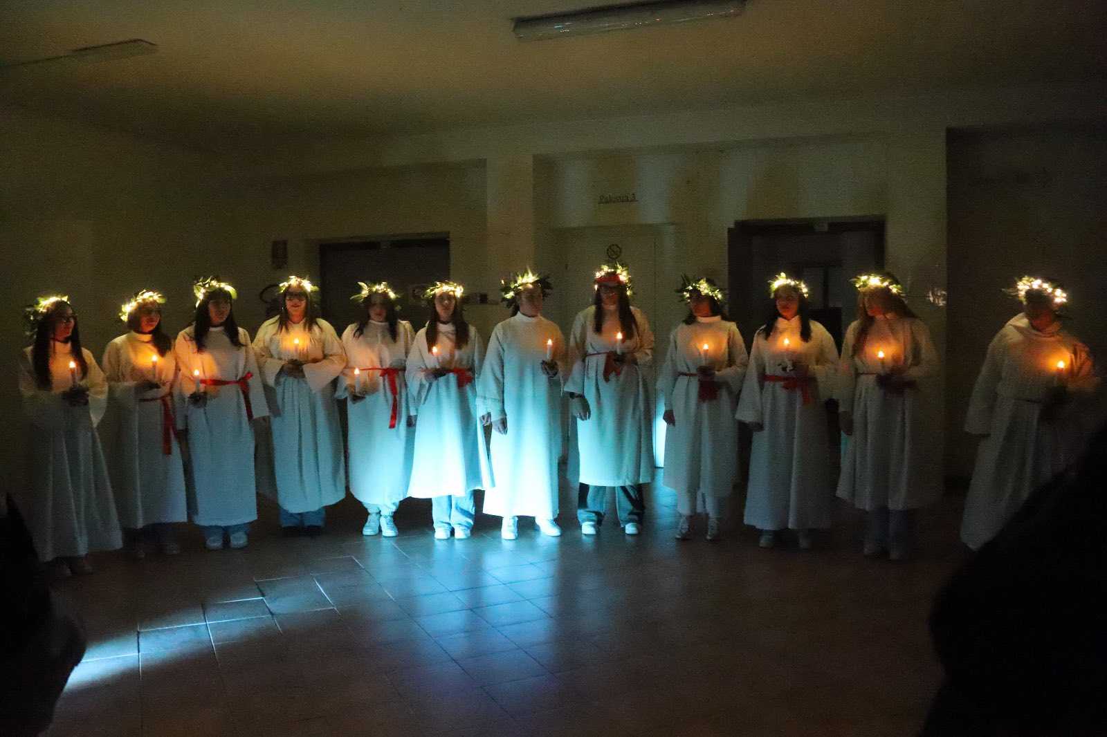 I giorni precedenti e la stessa mattinata del 13 la scuola si è trasformata in un laboratorio di idee condivise, di continui cambi di sceneggiatura, di lavori manuali crestivi. Il tutto per creare bellezza. Luci spuntate all’improvviso, drappi di raso colorato, decorazioni natalizie pensate e realizzate sul momento. Costumi di scena, profumo di pulito e ogni angolo illuminato. Tele e muri dipinti, note musicali che raggiungevano il cielo, lo sport sano e la danza con movimenti provati e riprovati con lo scopo di avvicinarsi alla perfezione. E poi Saturno e le stelle ammirate con un telescopio gigantesco. Tutto questo in un tourbillon di sorrisi, chiacchiere, corse, abbracci, sguardi complici.