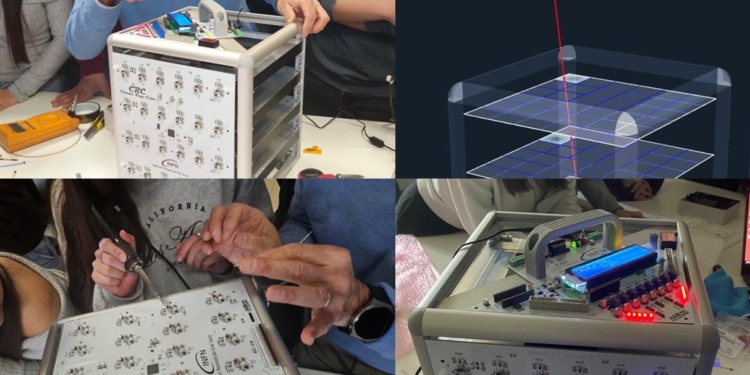 Le classi coinvolte, 3^B e 3^M, con la guida dell’Ing. Attanasio Candela del “Gran Sasso Tech” e con il supporto dei docenti referenti, Domenica Ranalli e Tonelli Francesco, hanno costruito, il Cosmic Rays Cube (CRC), rivelatore di raggi cosmici, un dispositivo di alta valenza scientifica e tecnologica: il telescopio CRC, infatti, converte il passaggio di particelle invisibili in un segnale di luce, rendendo, quindi, visibili particelle che sono invisibili all’occhio umano.