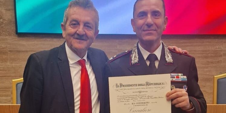 Avezzano. Il Maggiore dei Carabinieri Luigi Strianese è stato insignito del titolo di Cavaliere della Repubblica, primo grado dell’Ordine al Merito della Repubblica Italiana, riconoscimento conferito dal Presidente della Repubblica per meriti straordinari. Alla cerimonia, svoltasi in Prefettura a Roma, ha partecipato anche il Sindaco di Avezzano, Giovanni Di Pangrazio, a testimonianza del legame e della stima reciproca consolidati negli anni tra l’ufficiale dell’Arma e il primo cittadino.