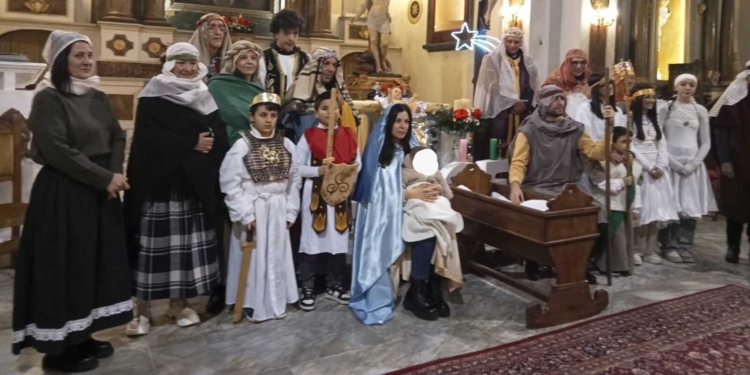 La chiesa si è trasformata in una suggestiva Betlemme, dove luci, silenzio e raccoglimento hanno accompagnato la scena della Natività, regalando ai presenti un momento intenso di preghiera e partecipazione. Un evento reso possibile grazie all’impegno dei volontari, delle famiglie e dei figuranti, che con spirito di servizio e collaborazione hanno dimostrato una forte coesione comunitaria.