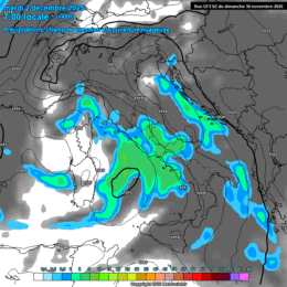 La situazione vista dal modello GFS per Martedì 2 Dicembre. Possibilità di piogge a carattere di rovescio sul territorio marsicano.