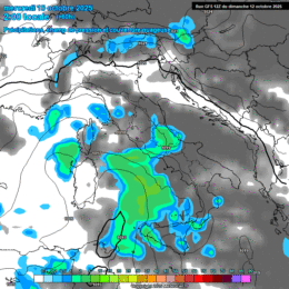 Stiamo vivendo delle giornate molto miti associate al cielo praticamente sgombro dalle nubi, a parte qualche stratificazione di passaggio. Per farla breve, la giornata di Lunedì 13 sarà sempre all’insegna del tempo stabile e soleggiato, mentre da Martedì nel corso delle ore pomeridiane, per la notte seguente e nel successivo giorno di Mercoledì, potremo assistere a dei rovesci che appaiono moderati al momento. Tempo che tuttavia potrà mantenersi un pochino disturbato anche poi. Ma vediamo l’evoluzione giorno per giorno. Lunedì 13, quindi, giornata buona come dicevamo, con soltanto qualche stratificazione di passaggio e forse qualche nube sparsa nel corso del pomeriggio. Venti da nord est e temperature pressochè stazionarie. Martedì, dopo un inizio non male, della nuvolosità andrà aumentando dal primo pomeriggio su tutta l’area in questione. Seguiranno dei fenomeni a carattere di rovescio a seguire, specie in serata, di moderata entità. Ventilazione da sud sud est e temperature in lieve diminuzione nella seconda parte della giornata. Mercoledì, entreranno delle correnti orientali più fresche, che daranno luogo ad un calo delle temperature di un paio di gradi circa. Cielo per lo più nuvoloso ove non mancheranno delle precipitazioni, sempre a carattere di rovescio. Ventilazione quindi da est nord est, moderati con qualche rinforzo. Giovedì, cielo tra variabile e nuvoloso, con la possibilità di qualche debole fenomeno a carattere sparso. Temperature ancora in leggera flessione (+9°c ad 850 hpa) e venti nord orientali. Venerdì, situazione press a poco identica e Sabato cielo più sgombro dalle nubi e temperature in lieve aumento nei valori massimi. Venti deboli da ovest sud ovest.