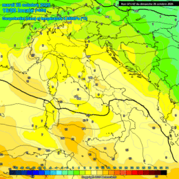 Ottobre sta per lasciare il passo a Novembre, in un contesto di spiccata variabilità ove potranno presentarsi dei fenomeni a carattere di rovescio tra Giovedì 30 e Venerdì 31. Un pochino più fresco Lunedì, poi le temperature torneranno a salire di qualche grado. Pertanto Lunedì 27, giornata con tempo abbastanza buono, ove il cielo si presenterà tra poco nuvoloso e variabile, venti da ovest sud ovest, moderati e temperature in flessione di qualche grado (+8°c ad 850 hpa). Martedì, poco nuvoloso e temperature in leggero aumento specie nei valori massimi. Venti da sud ovest. Mercoledì, così come Giovedì, potranno presentare qualche precipitazione tra carseolano e marsicano nella seconda parte della giornata. Ventilazione sempre sud occidentale e temperature in leggera flessione nei valori massimi. Venerdì 31, ancora possibilità di qualche rovescio di debole entità sul carseolano, monti Simbruini. Temperature stazionarie e venti sud occidentali. Infine Sabato 1 Novembre che al momento appare con della spiccata variabilità, venti da sud ovest e temperature pressochè stazionarie.