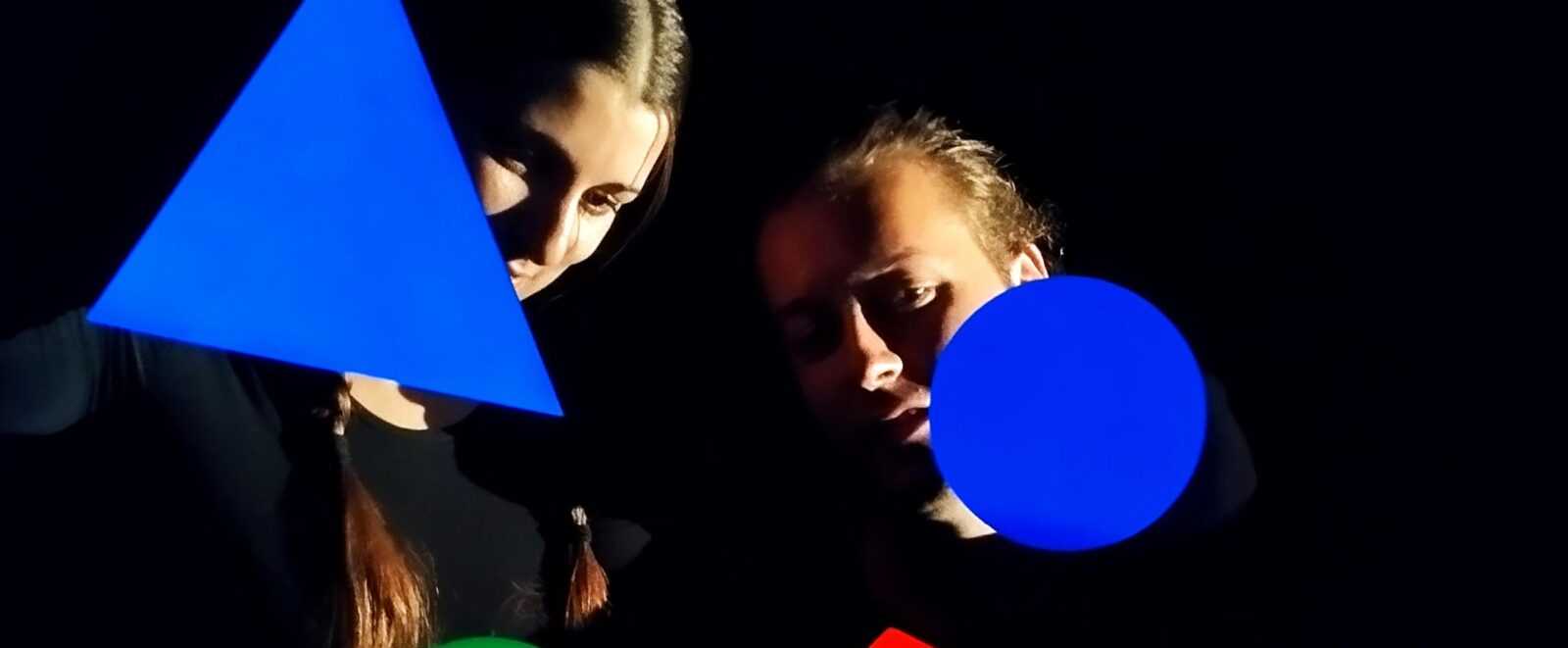 Da una scatola, tutta nera, suoni strampalati e gioiosi, fanno nascere buffi personaggini, fatti di molle, guanti e piccole forme geometriche colorate e giocherellone. L’ispirazione sono i disegni e i manifesti di Fortunato Depero, il teatro dei piccoli ed i balli plastici. Si gioca con il rapporto tra grande e piccolo, tra il su ed il giù. Gli animatori sono in relazione con i bimbi e le bimbe, passando dal dentro al fuori di uno strano piccolo mondo, un po’ come se fosse un pianeta alieno, un po’ come se fosse una grande baracca di burattini, un po’ come se fosse lo schermo di un Tv o di uno smartphone, che ad un certo punto prende vita e combina mille guai divertenti, passando da una sola dimensione tutta piatta, fino a 2 3 o… 4 dimensioni?! Piccole storie di piccoli eroi avventurosi, esplorazioni spaziali o marine, mostriciattoli pasticcioni e robottini molleggianti. La lingua è aliena, i suoni elettronici a 8bit rivisitano Bach, le musiche dei videogame, le grandi hit degli anni ’80, sballonzolati in su e in giù in un grande girotondo.
