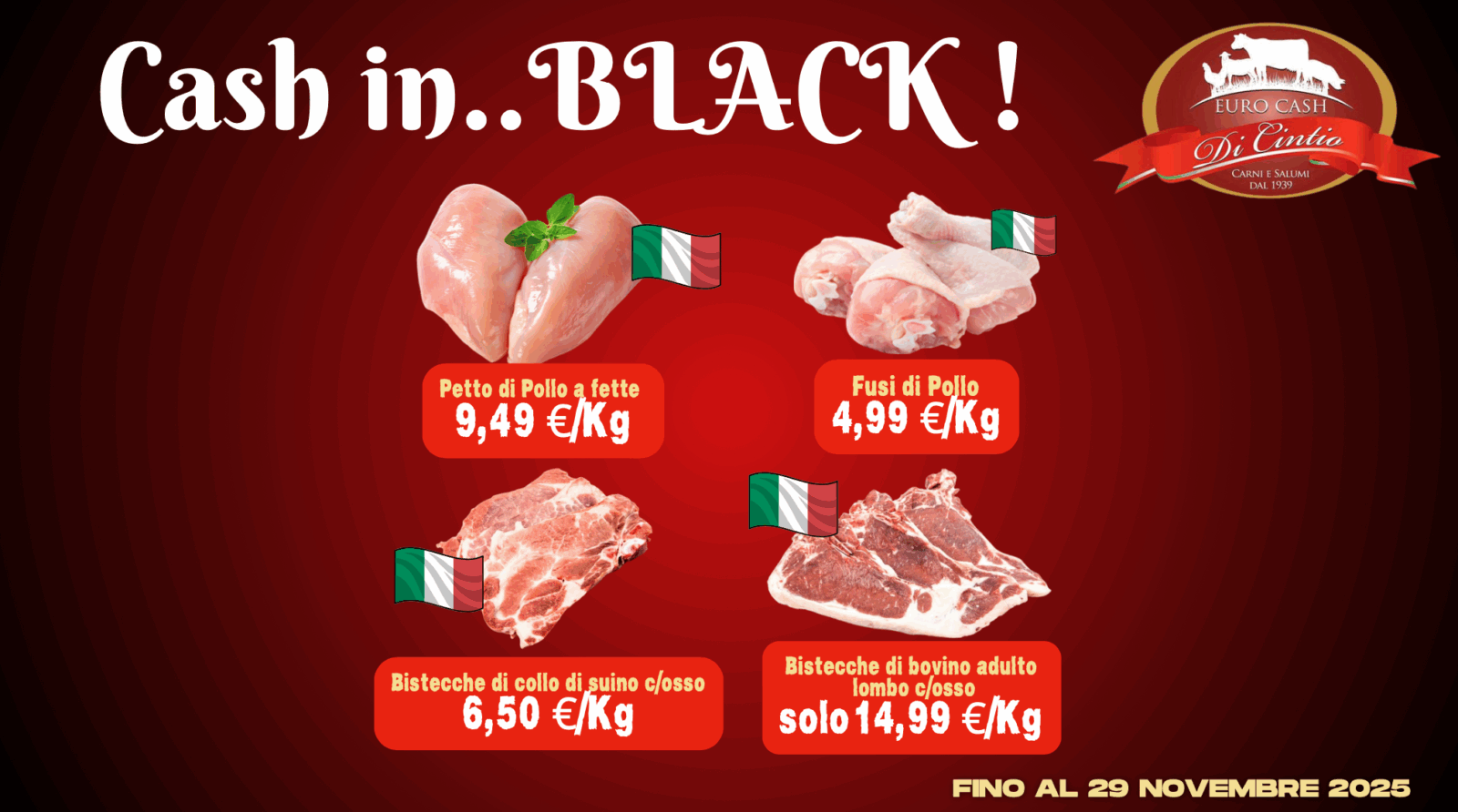 È così che Euro Cash ha deciso di reinterpretare il Black Friday a modo suo: niente caos, niente code interminabili, solo offerte vere su prodotti che finiscono davvero nel carrello di tutti. Nasce così il Cash in Black, l’appuntamento che da qui al 29 novembre 2025 porta nel reparto macelleria una selezione di carni freschissime a prezzi… più neri che mai.