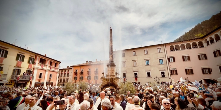 Nel cuore di Tagliacozzo, una piazza colma di fedeli e silenziosamente raccolta si è trasformata in uno spazio di intensa emozione e spiritualità. Dal balcone di piazza dell’Obelisco, il cardinale Fernando Filoni ha consegnato alla comunità un messaggio che ha attraversato la folla come un invito personale: “Dio ha un volto, quello di Cristo, che è misericordia”. È stato il momento più alto della solennità del Volto Santo, tra preghiera, tradizione e partecipazione popolare.