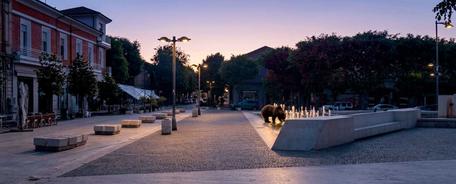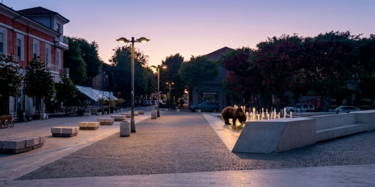 Avezzano. Un esemplare adulto di orso marsicano è stato avvistato ed immortalato da un addetto della Tekneko alle prime luci dell’alba, nella centralissima piazza risorgimento.