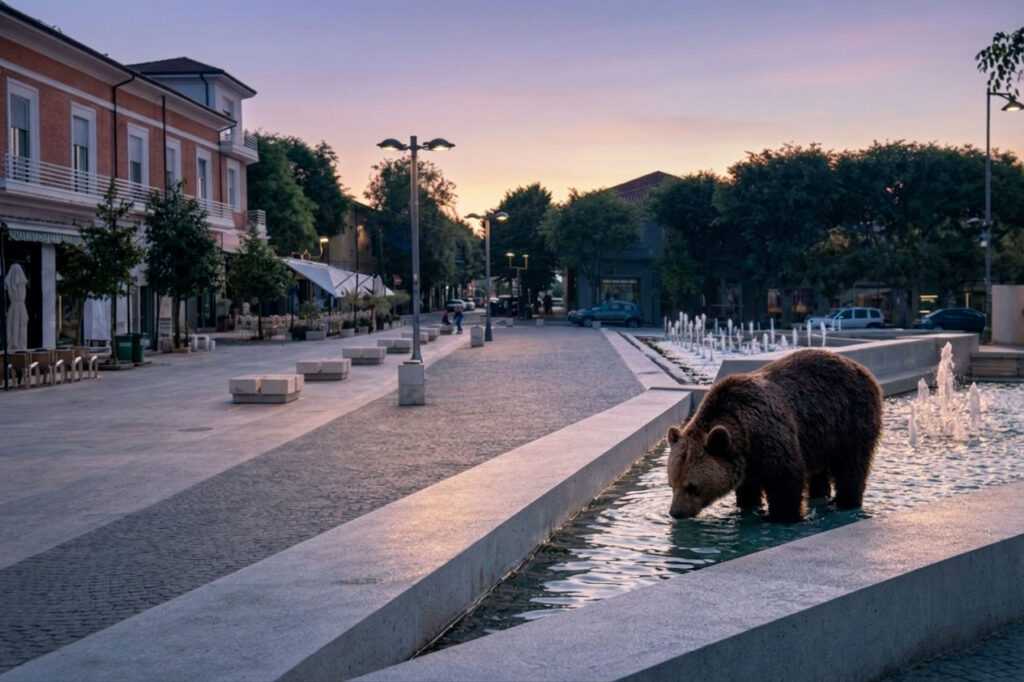 L’avvistamento è durato solo pochi minuti: il plantigrade, per nulla intimorito dall’addetto alla pulizia delle strade e dei pochi passanti, si è avvicinato alla vasca per bere, ha immerso le zampe nella fontana, e poi con tutta calma si è allontanato dal centro città, tornandosene in direzione della riserva naturale del Monte Salviano.