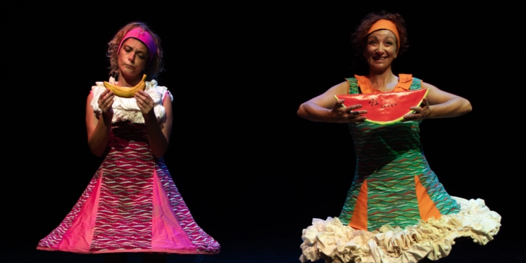 Belle Toaste è uno spettacolo ispirato al racconto “La battaglia del burro” di Dr. Seuss – uno tra i più geniali scrittori per l’infanzia del Novecento – qui il pane imburrato diventa metafora giocosa e pretesto geniale per raccontare ai bambini, e non solo ad essi, la spaventosa realtà della guerra fra popoli. Lo spettacolo parte da qui e pone al centro della scena un grosso ed apparentemente invalicabile muro, come un protagonista ingombrante che vuol simboleggiare tutti i confini, concreti o meno, che l’essere umano pone sulla terra per delineare il proprio spazio, allontanare i propri vicini, delimitare le proprie terre. Piccole, ridicole e spaventate si presentano al cospetto del muro la Ziga e la Zaga, mandate lì in missione speciale per sorvegliare il confine. Esse infatti abitano i due paesi confinanti in guerra tra loro da tempo immemore per un motivo apparentemente futile: gli Zighi imburrano le fette di pane sotto, gli Zaghi al contrario le imburrano sopra. La natura clownesca, colorata e buffonesca di Ziga e Zaga, si rivela sin da subito generando una serie di equivoci, situazioni strampalate, dialoghi no sense e un vortice di eventi inarrestabile che porterà a scardinare il muro facendogli letteralmente prendere vita. Lo vedremo aprirsi creando varchi inaspettati e lo vedremo fiorire con strani e divertenti oggetti pseudo bellici, ci stupirà con i suoi colori nascosti e rivelerà i suoi trucchi segreti di guerra in un’estetica giocosa da pane e marmellata. Per tutto il tempo, però, la sua presenza resterà costante ed ingombrante a ricordarci in ogni momento quanto sia difficile superare alcune barriere costruite in secoli di storia. E così la Ziga e la Zaga tra colpi di marmellata, duelli di baguette, ciabatte a lievitazione naturale lanciate sulla nemica, inizieranno letteralmente a scolorire, ritrovandosi sempre più stanche e confuse in questa lotta incessante l’una contro l’altra in cui faticheranno non poco a dimostrarsi Belle Toaste.