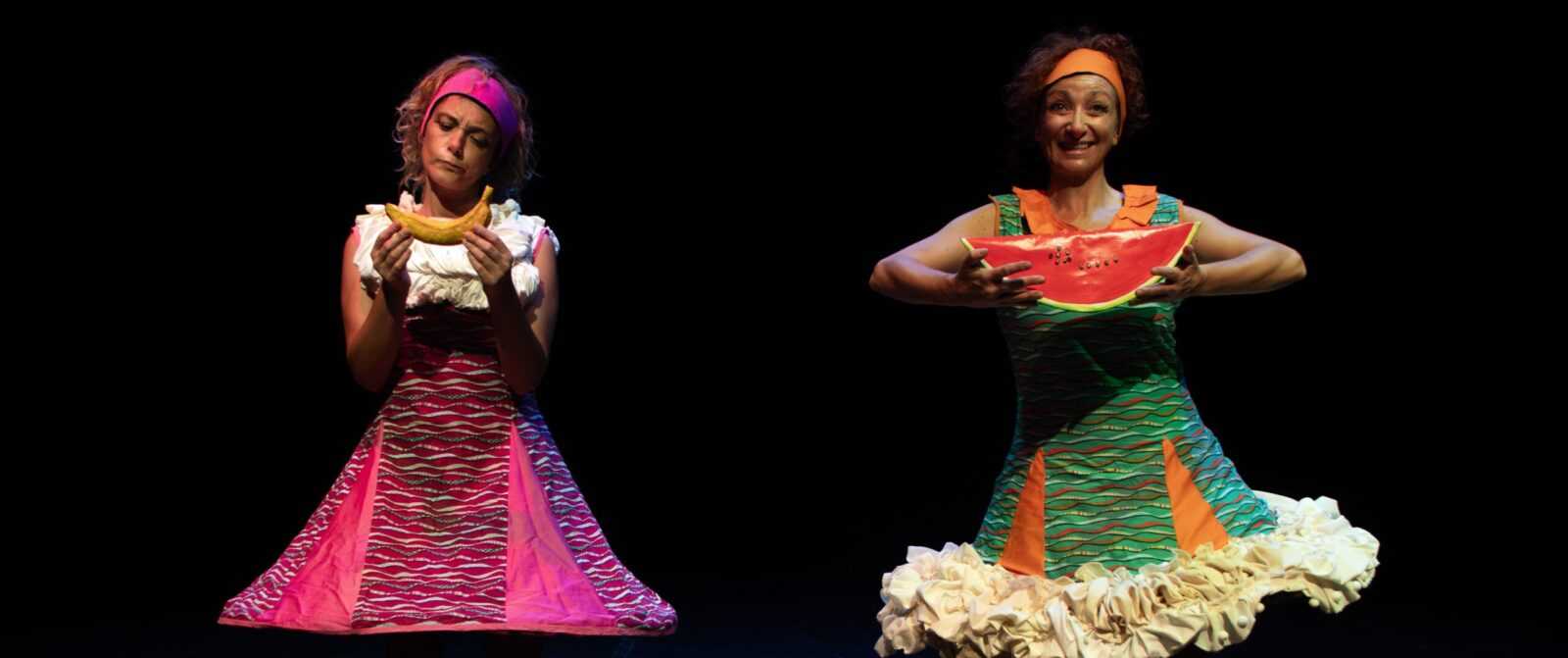 Belle Toaste è uno spettacolo ispirato al racconto “La battaglia del burro” di Dr. Seuss – uno tra i più geniali scrittori per l’infanzia del Novecento – qui il pane imburrato diventa metafora giocosa e pretesto geniale per raccontare ai bambini, e non solo ad essi, la spaventosa realtà della guerra fra popoli. Lo spettacolo parte da qui e pone al centro della scena un grosso ed apparentemente invalicabile muro, come un protagonista ingombrante che vuol simboleggiare tutti i confini, concreti o meno, che l’essere umano pone sulla terra per delineare il proprio spazio, allontanare i propri vicini, delimitare le proprie terre. Piccole, ridicole e spaventate si presentano al cospetto del muro la Ziga e la Zaga, mandate lì in missione speciale per sorvegliare il confine. Esse infatti abitano i due paesi confinanti in guerra tra loro da tempo immemore per un motivo apparentemente futile: gli Zighi imburrano le fette di pane sotto, gli Zaghi al contrario le imburrano sopra. La natura clownesca, colorata e buffonesca di Ziga e Zaga, si rivela sin da subito generando una serie di equivoci, situazioni strampalate, dialoghi no sense e un vortice di eventi inarrestabile che porterà a scardinare il muro facendogli letteralmente prendere vita. Lo vedremo aprirsi creando varchi inaspettati e lo vedremo fiorire con strani e divertenti oggetti pseudo bellici, ci stupirà con i suoi colori nascosti e rivelerà i suoi trucchi segreti di guerra in un’estetica giocosa da pane e marmellata. Per tutto il tempo, però, la sua presenza resterà costante ed ingombrante a ricordarci in ogni momento quanto sia difficile superare alcune barriere costruite in secoli di storia. E così la Ziga e la Zaga tra colpi di marmellata, duelli di baguette, ciabatte a lievitazione naturale lanciate sulla nemica, inizieranno letteralmente a scolorire, ritrovandosi sempre più stanche e confuse in questa lotta incessante l’una contro l’altra in cui faticheranno non poco a dimostrarsi Belle Toaste.
