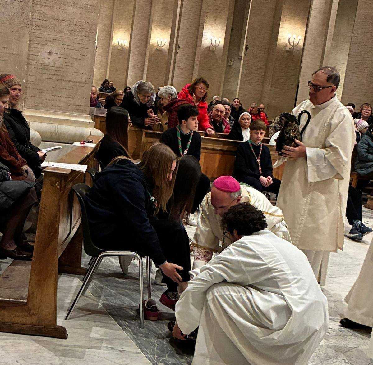 Nel corso della celebrazione, il vescovo ha posto al centro il valore del servizio e dell’umiltà, sottolineando il significato profondo del gesto compiuto da Gesù.