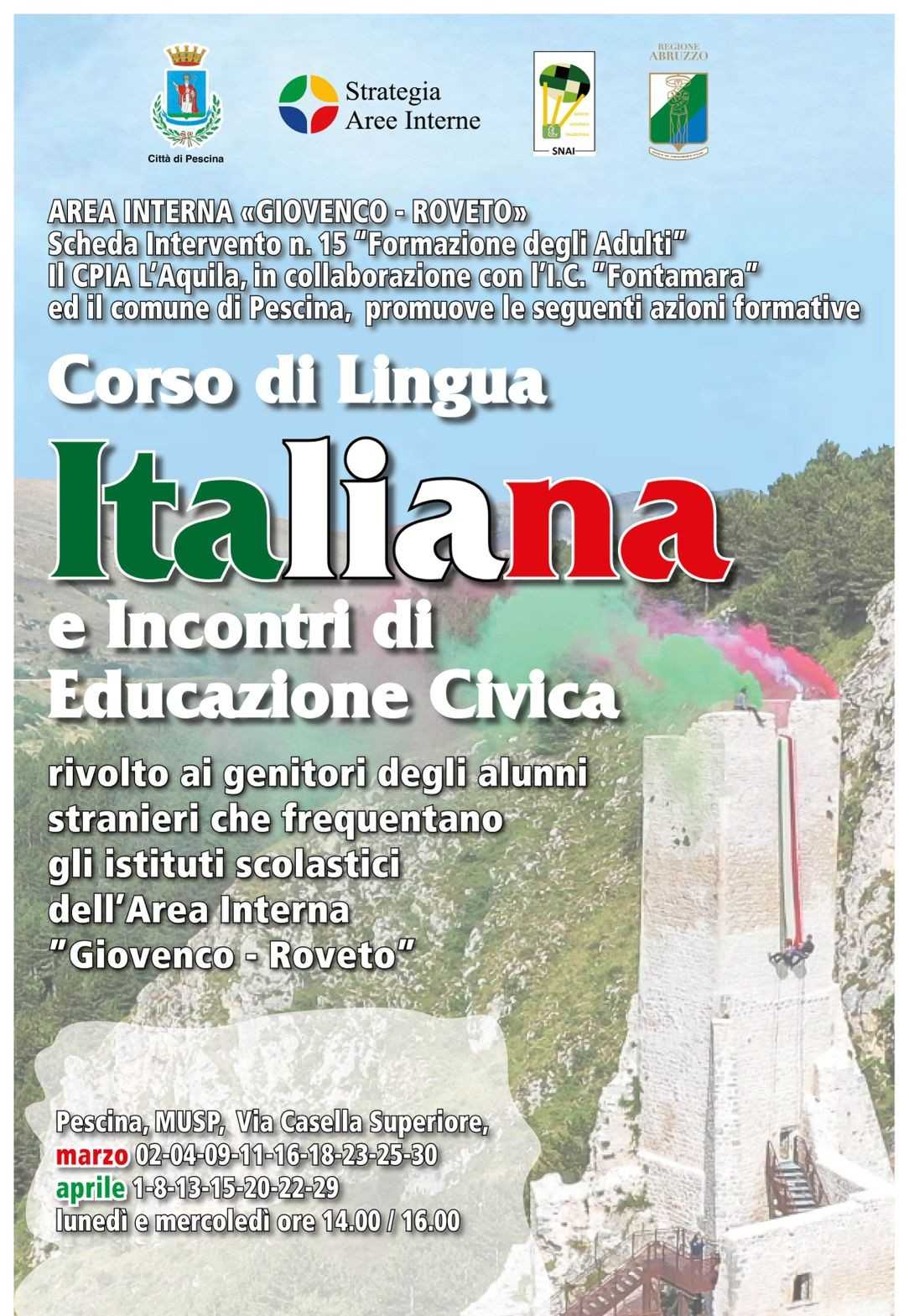 Corsi di formazione riservati agli stessi cittadini immigrati maggiori di 18 anni residenti o domiciliati in uno dei 13 comuni dell’Area interna “Giovenco-Roveto”.