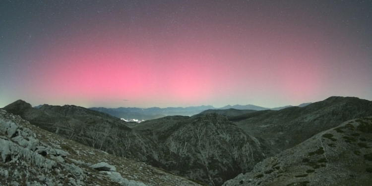 Magliano de’ Marsi. La luce squarcia la notte della Marsica: spettacolare aurora boreale visibile da Magliano de’ Marsi.