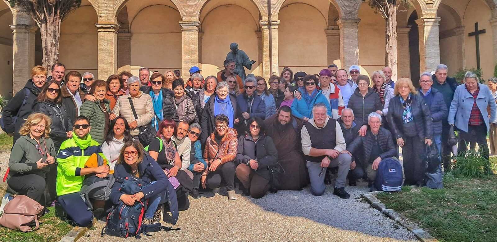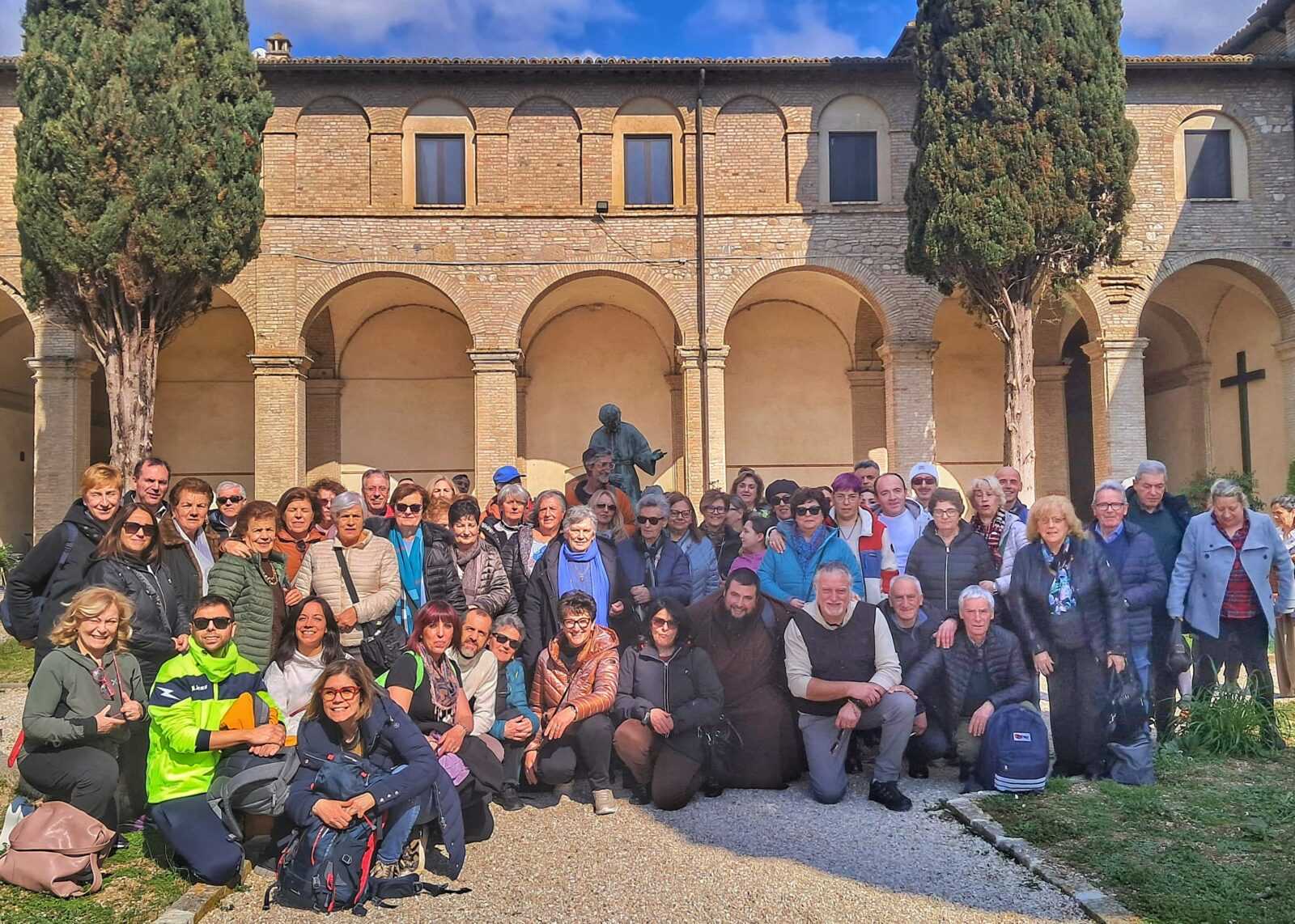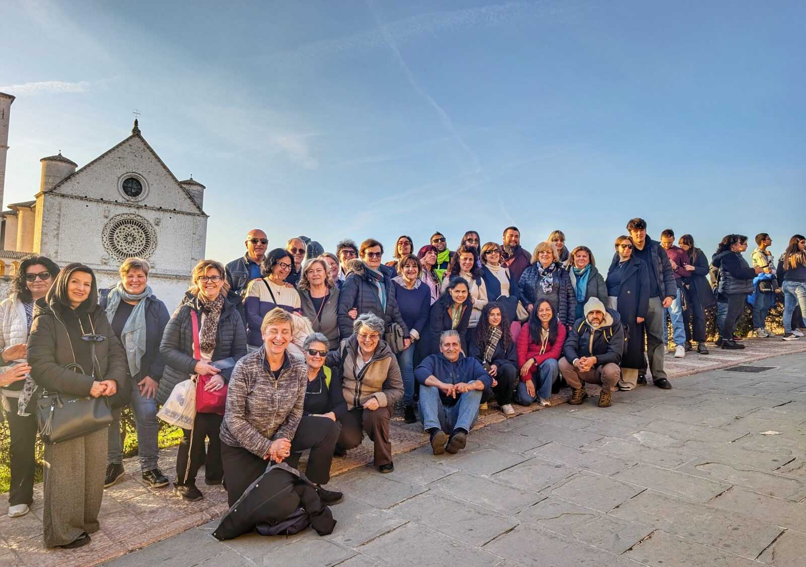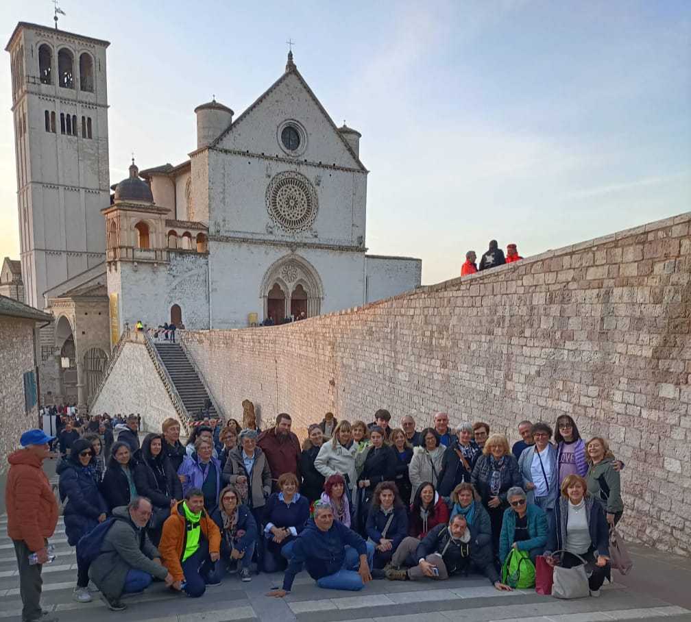 Dopo il pranzo e un momento di fraternità, il gruppo ha raggiunto Assisi per un pomeriggio di visita e raccoglimento: la Basilica di Santa Chiara con il crocifisso di San Damiano, la casa paterna di Francesco, il luogo della spoliazione, la casa di Bernardo di Quintavalle, il luogo del transito. Un itinerario che ha ripercorso i passaggi decisivi della conversione e della sequela radicale del poverello.