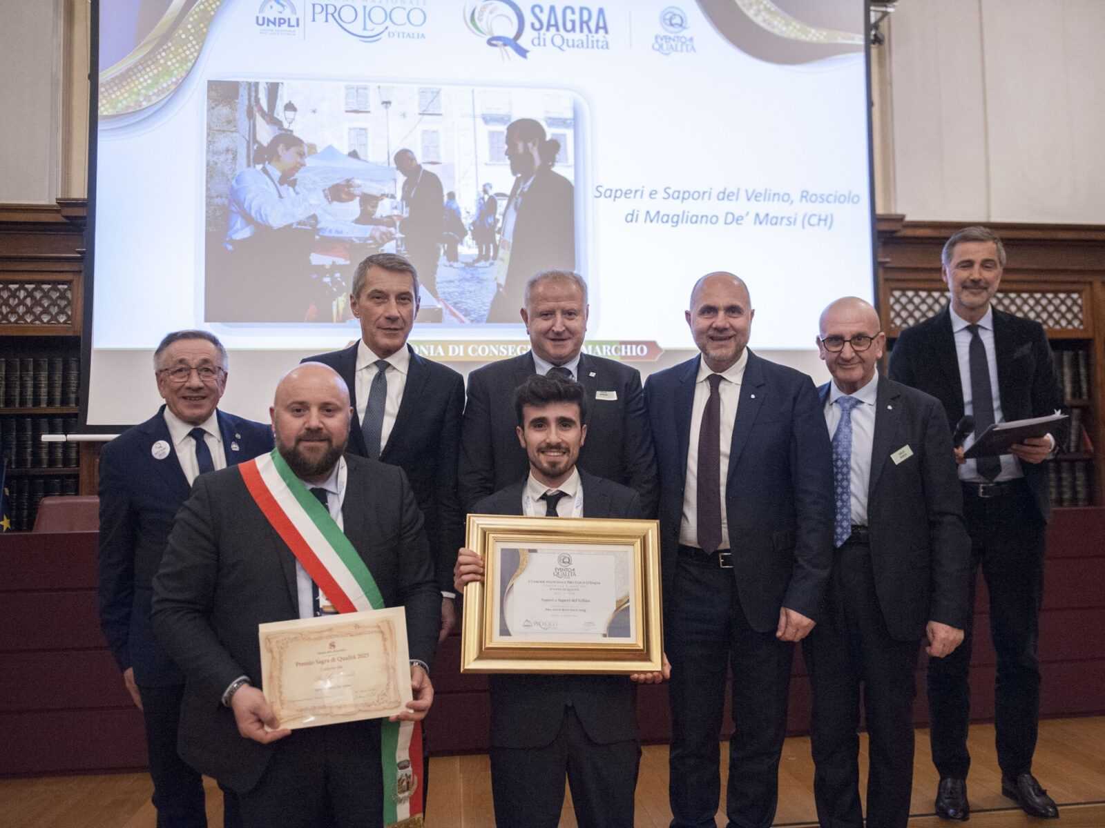 A ottenere i marchi “Sagra di qualità” ed “Evento di qualità”, promossi dall’Unione Nazionale delle Pro Loco d’Italia per valorizzare iniziative autentiche e ad alto standard organizzativo, sono state tre realtà del territorio: la Sagra della triglia e del pesce fritto della Pro Loco Villa San Nicola di Ortona (Chieti), la Sagra delle pappardelle al sugo di papera della Pro Loco Montegualtieri di Cermignano (Teramo) e “Sapori e saperi del Velino” della Pro Loco Rosciolo di Magliano de’ Marsi (L’Aquila).