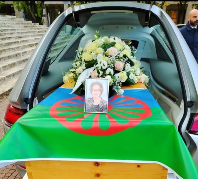 Durante i funerali il ponte tra culture che aveva creato ha avuto apice e massima espressione nell’omaggio del popolo Rom che ha voluto celebrare la vita della professoressa adagiando la bandiera simbolo della propria cultura.