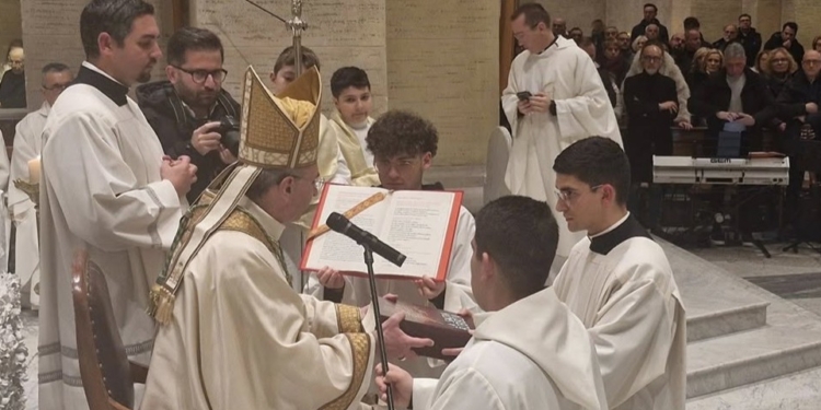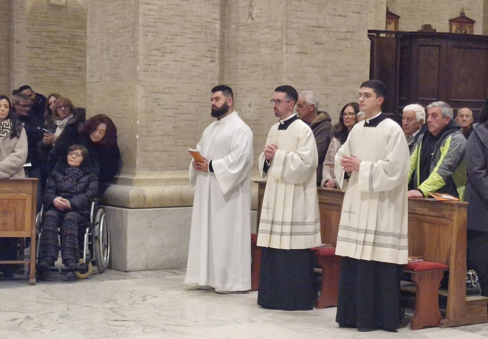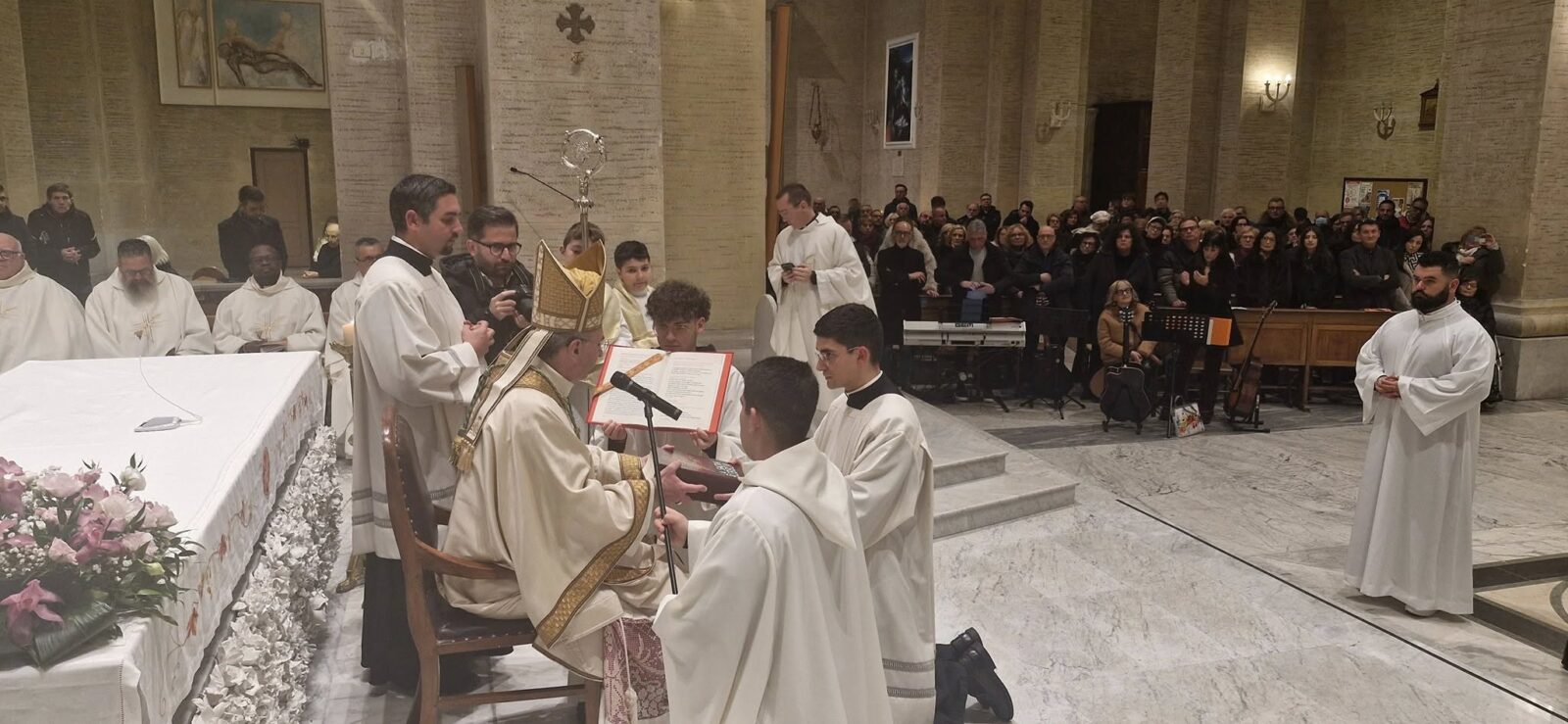 I seminaristi Matteo Angelozzi e Mattia Paolini hanno ricevuto il ministero del lettorato, insieme ad Andrea Rodorigo, della comunità della Madonna dei Bisognosi. Per quanto riguarda il ministero dell’accolitato, sono stati istituiti Vincenzo Salustri, della parrocchia dello Spirito Santo in Avezzano, e Alfredo Pascucci, della parrocchia di San Giacomo in Colle San Giacomo. È stato inoltre istituito lettore Giuseppe Lorusso, della parrocchia di San Giovanni in Avezzano.