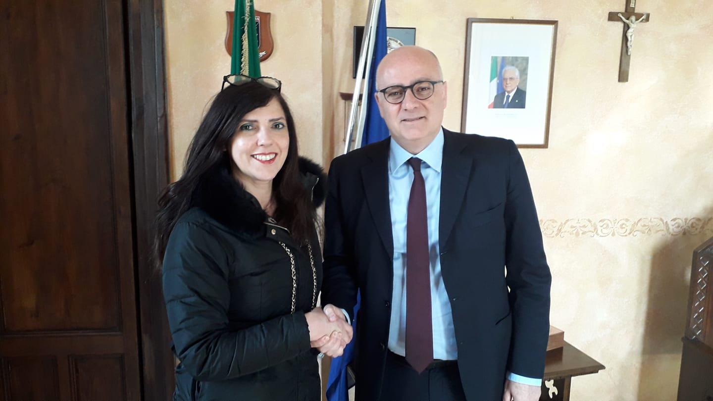 Avezzano. Stretta di mano in Comune tra il sindaco di Avezzano, Gabriele De Angelis, e Maria Celeste D’Orazio, neo dirigente della casa circondariale di Avezzano.