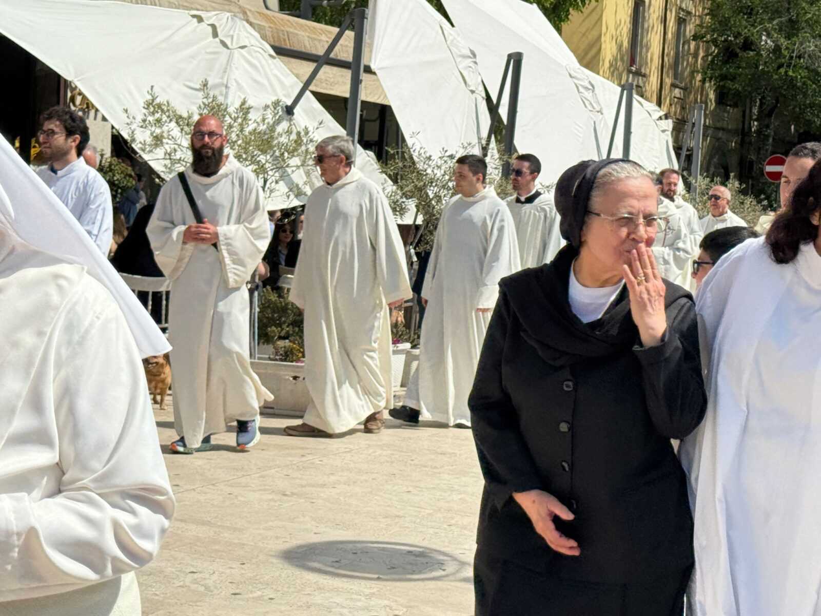 È proprio lì che si è svolto il momento più solenne della mattinata: la Santa Messa presieduta dal Vescovo dei Marsi, Sua Eccellenza Giovanni Massaro. La celebrazione ha raccolto l’intera comunità in un clima di raccoglimento profondo, dando continuità spirituale al cammino appena concluso per le strade della città.