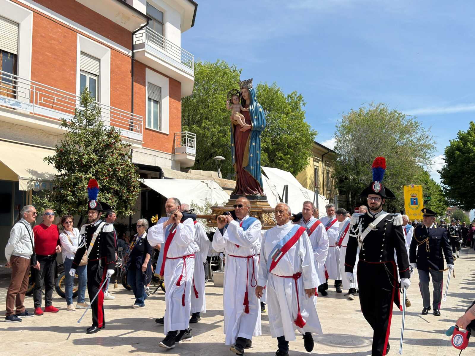 Avezzano. Centinaia di fedeli raccolti lungo le strade hanno reso omaggio a Maria Santissima di Pietraquaria. Un corteo partecipato, ricco di emozione e devozione ha sfilato questa mattina. Un momento solenne che unisce tradizione e fede.