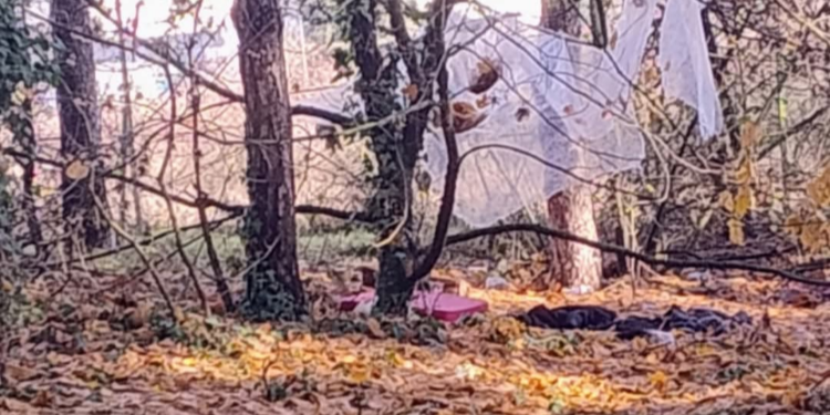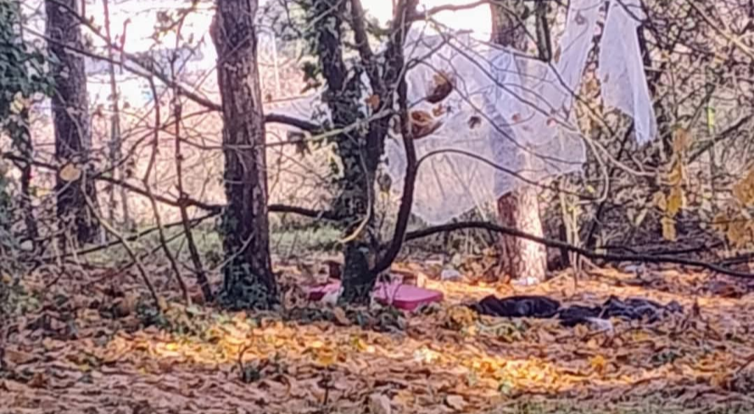 Un cittadino ha segnalato la presenza, nella pineta di Avezzano, di una postazione riconducibile a un possibile ricovero di fortuna, presumibilmente utilizzato da una persona senza fissa dimora o comunque riconducibile a una situazione di degrado.