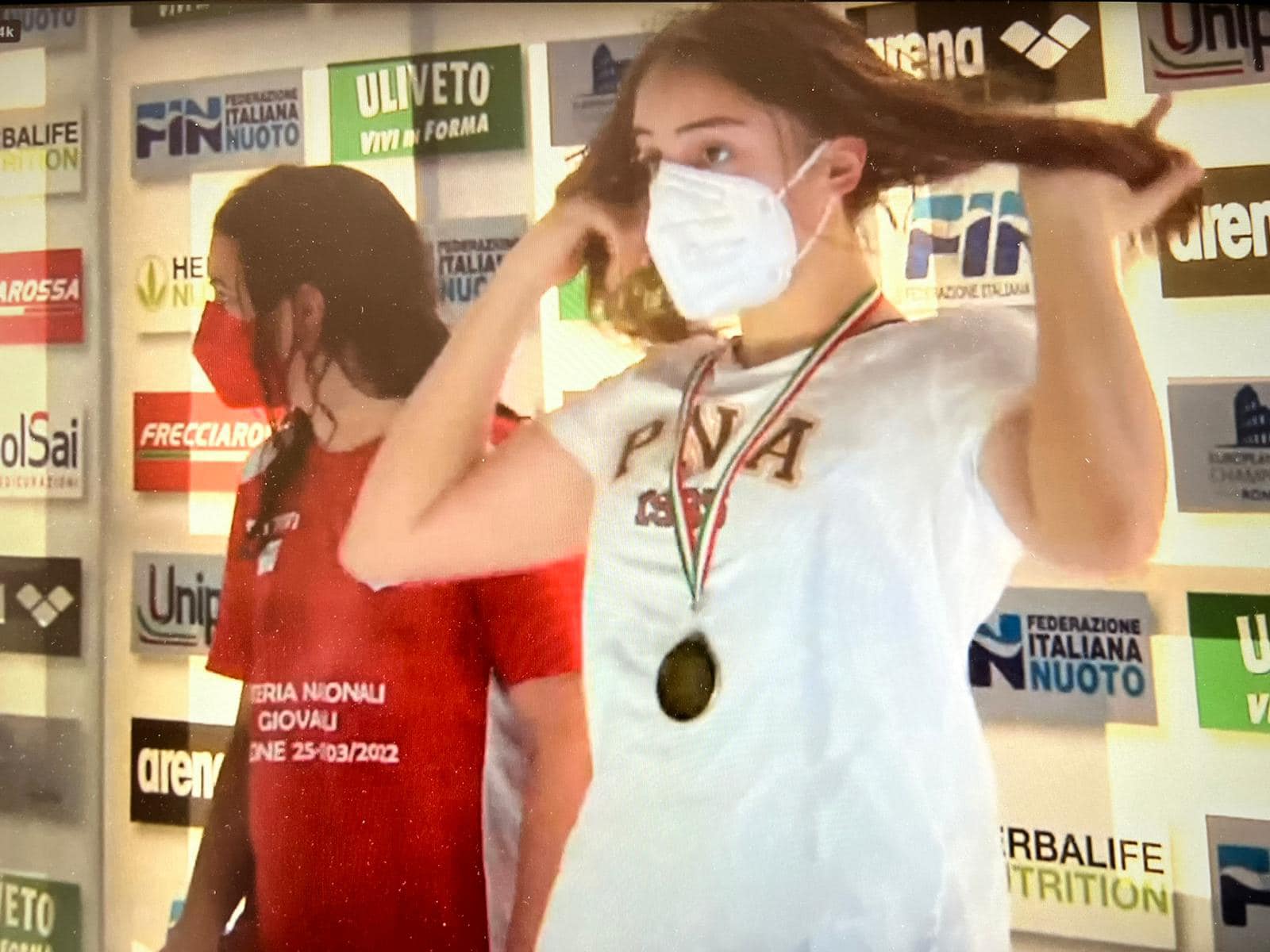 Avezzao. Medaglia di bronzo per Giorgia Fabiani, della Pinguino nuoto di Avezzano. Terza assoluta in Italia per i 100 metri Rana nella categoria Ragazze 2008 ai Criteria Nazionali Giovanili 2022.