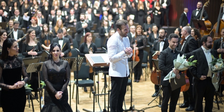Il direttore generale dell’evento nonché violinista Abigeila Voshtina, eccellenza d’Albania, ha continuato: “Per molti anni, soprattutto durante il periodo comunista, le persone nella nostra regione hanno avuto difficoltà a esprimere le proprie convinzioni e a entrare in contatto con Dio. Il regime oppressivo ha soffocato la libertà spirituale e ha cercato di cancellare le tradizioni profondamente radicate che ci uniscono. Nonostante queste sfide, lo spirito indomito della nostra comunità ha perseverato, alimentando una fede silenziosa che è sbocciata nei cuori di molti. Ora, dopo un anno di preparazione insieme a Dardan, Rreze e Jacopo, siamo alle porte di un nuovo, meraviglioso capitolo. Questo evento simboleggia non solo una celebrazione della musica, ma anche un recupero del nostro patrimonio spirituale e un’espressione di unità. La musica trascende ogni confine e funge da linguaggio universale che unisce persone di tutte le religioni e culture. Durante questo evento memorabile, suoneremo un magnifico Oratorio nella splendida Basilica di Santa Maria in Ara Coeli, dove le armonie risuoneranno come onde di preghiera, raggiungendo Dio e riportando la luce nella vita di coloro che da tempo cercano connessione e significato. Insieme onoreremo il nostro passato abbracciando un futuro pieno di speranza, uniti attraverso il potere della musica.” Sul podio di questi due grandiosi concerti ci sarà il M° Jacopo Sipari, che già da tempo divulga l’opera del Cardinale Bartolucci in giro per il mondo. “Sono molto contento – ha rivelato il direttore – di essere ritornato qui in Kosovo alla testa di queste splendide masse orchestrali e corali, quest’ultimo preparato meravigliosamente dal M° Hajrullah Syla, ovvero dell’opera e della filarmonica insieme, per questa produzione bellissima, ovvero questo oratorio, che pretende una profonda lettura e comprensione, essendo molto ricco di citazioni, anche operistiche, tanto da poterlo definire un’opera sacra. Le voci sono trattate con grande attenzione e raffinatezza e il tenore evoca la scrittura dell’ultimo Verdi, un’opera che certamente resterà nel cuore di quanti avranno la possibilità di ascoltarla, poiché ti avvicinano concretamente al divino, lasciando trasparire la fede del compositore. Libretto e momento in cui è stato composto influiscono sulle scelte delle tonalità, davvero particolari, e la seconda parte resta un capolavoro, tra l’altro giovanile, poiché composto da un Bartolucci appena diciottenne. Onore ed onere di andare così a concludere questo Giubileo con quest’opera di rarissimo ascolto, portando avanti l’idea di eseguire l’integrale delle opere del Cardinale, impreziosita dalle voci di quattro solisti di caratura internazionale”.
