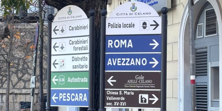 “Nell’ambito dell’applicazione del PUMS, è iniziata la rimozione della vecchia e vetusta segnaletica verticale, in luogo di quella nuova molto più decorosa e conforme al codice della strada. Il lavoro di rinnovo della segnaletica verticale seguiterà per mesi in tutti quartieri di Celano, con una nuova viabilità frutto di uno studio e visione globale, organica e puntuale del tessuto urbano cittadino che a lungo termine porterà benefici in termini di decoro, ordine e parcheggi”
