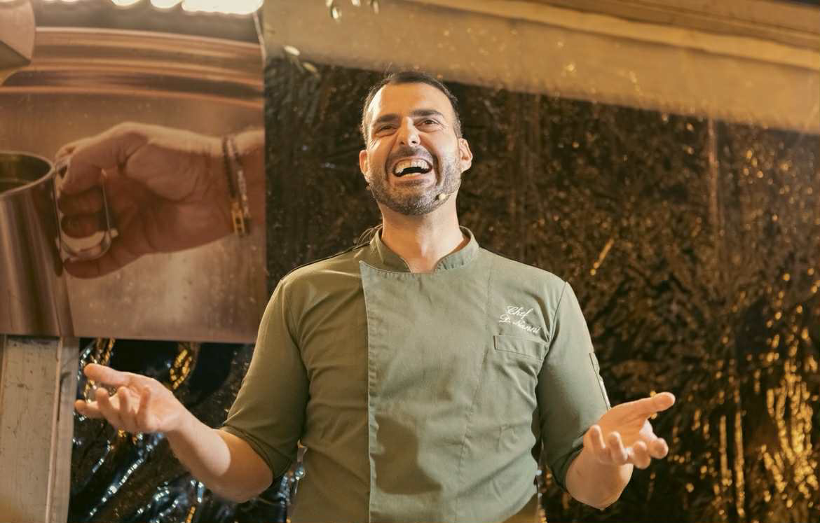 Il primo piatto, ideato da Nanni per l’evento e preparato durante lo show cooking con la partecipazione di un pubblico accogliente e coinvolto, è stato servito durante la cena sotto le stelle, curata dello chef abruzzese Antony Zinni che ha abbinato alla ricetta di Nanni piatti che hanno esaltato le materie prime d’Abruzzo, in primis l’olio Evo: vellutata di zucca, cuore di Pecorino e crumble di castagne; stracotto di maiale alla ventricina su purè di sedano e rapa; mousse all’olio d’oliva, terra al cacao e coulis di lamponi e menta. La cena è stata accompagnata dalle note dei DL show event che hanno impreziosito anche il momento dello show cooking di Davide Nanni che ha richiesto, durante la preparazione live del piatto, musica abruzzese. E così sulle note di “Reginella campagnola”, canzone a lui molto cara legata al ricordo dei momenti trascorsi con il nonno, e “Vola vola” si è tenuto uno straordinario spettacolo di cultura tradizionale abruzzese.