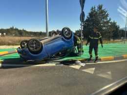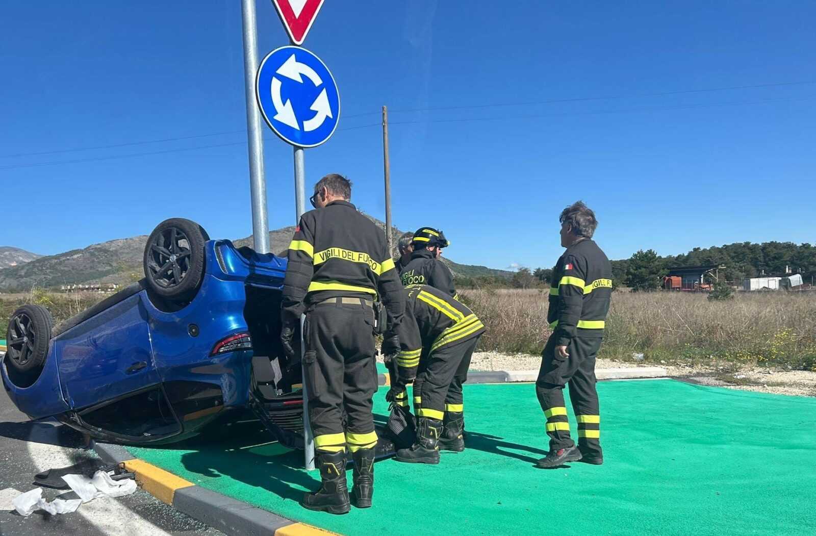 Paura ad Avezzano, auto si capovolge all’uscita dell’autostrada